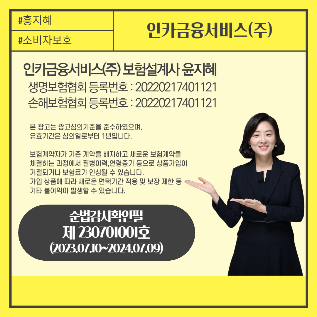안녕하세요. 천만보험 흥지혜 입니다.